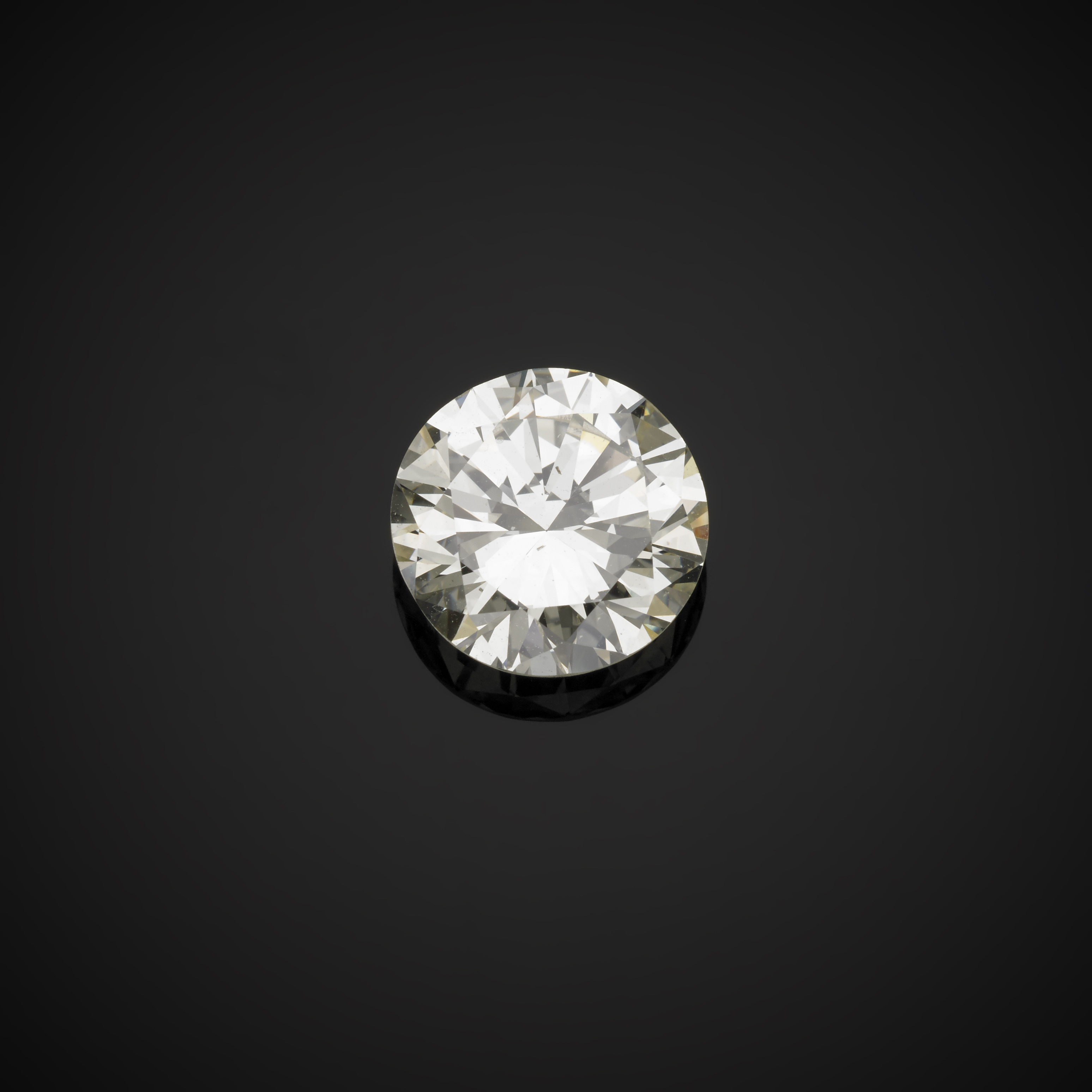 Diamante rotondo taglio a brillante moderno europeo di ct 3,37 Accompagnato da analisi gemmologica IGI n. 39639 Milano del 14/12/2015 Modern European cut diamond ct, 3.37 Appended IGI certificate