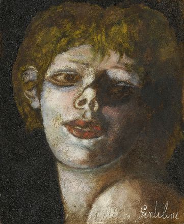 Franco Gentilini (Faenza, 1909 - Roma, 1981) DONNA SORRIDENTE, 1979 Tecnica mista su cartone, cm. 24x29 Firma e data in basso a destra. Sul verso: etichetta Galleria d’Arte Ponte Vecchio, Firenze. Autentica dell’autore su foto.