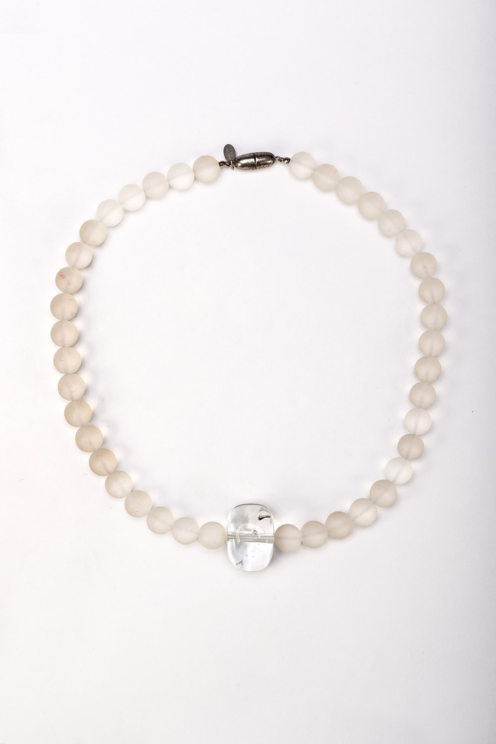 SENT, MURANO Collana con boules in vetro satinato ed al centro un barilotto pi˘ grande in vetro trasparente