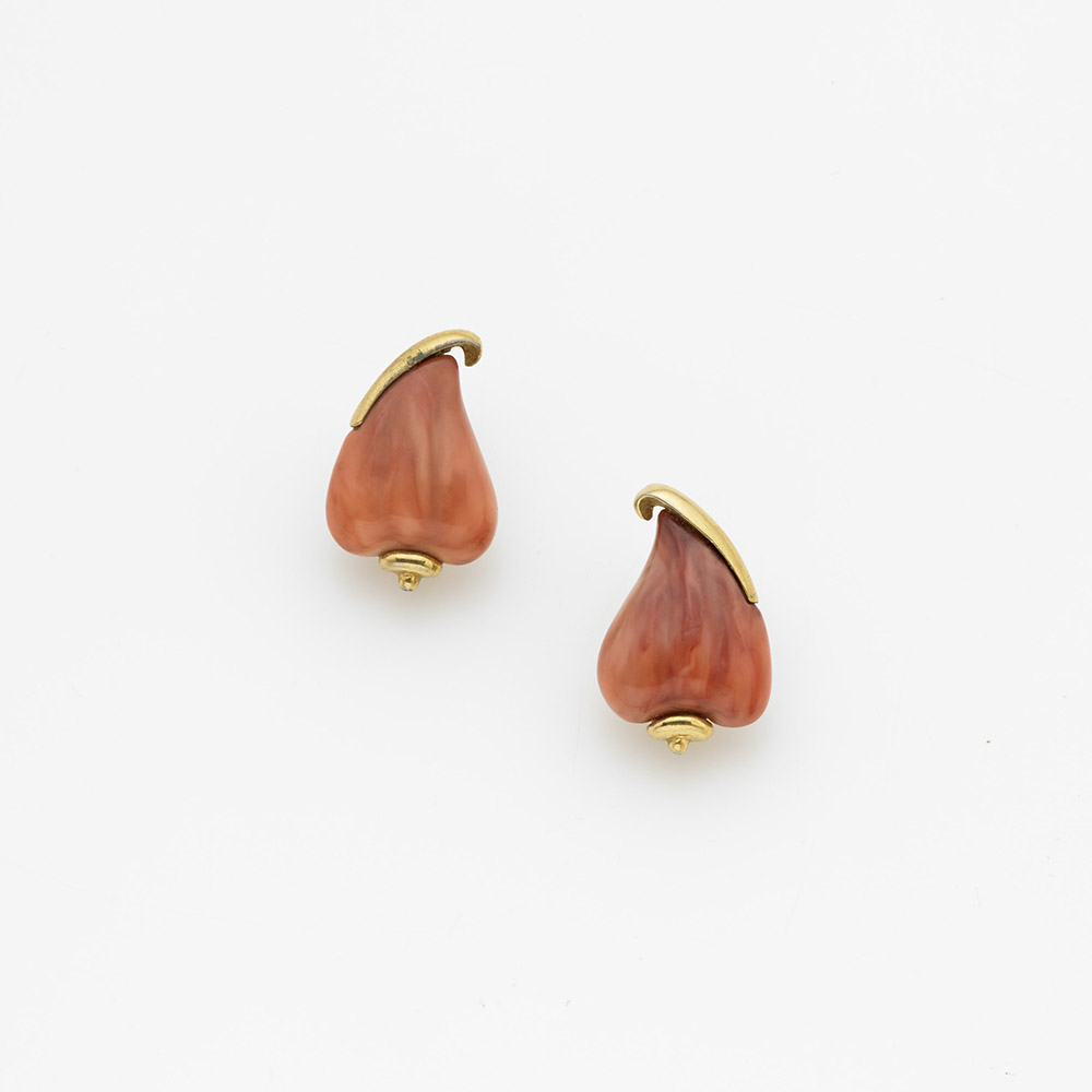 GIVENCHY- PARIS NEW YORK 1979 Orecchini a lobo con clips e bachelite a ricordare il corallo