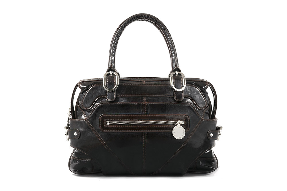 STELLA McCARTNEY Grande borsa a due manici a doppio scomparto, dettagli in metallo nichelato color testa di moro lucido, sacchetto originale, cm 43 (segni d'uso)