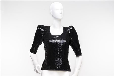 PESCHINI Roma Top a mezza manica in paillettes nere con profili in raso(mis 42)