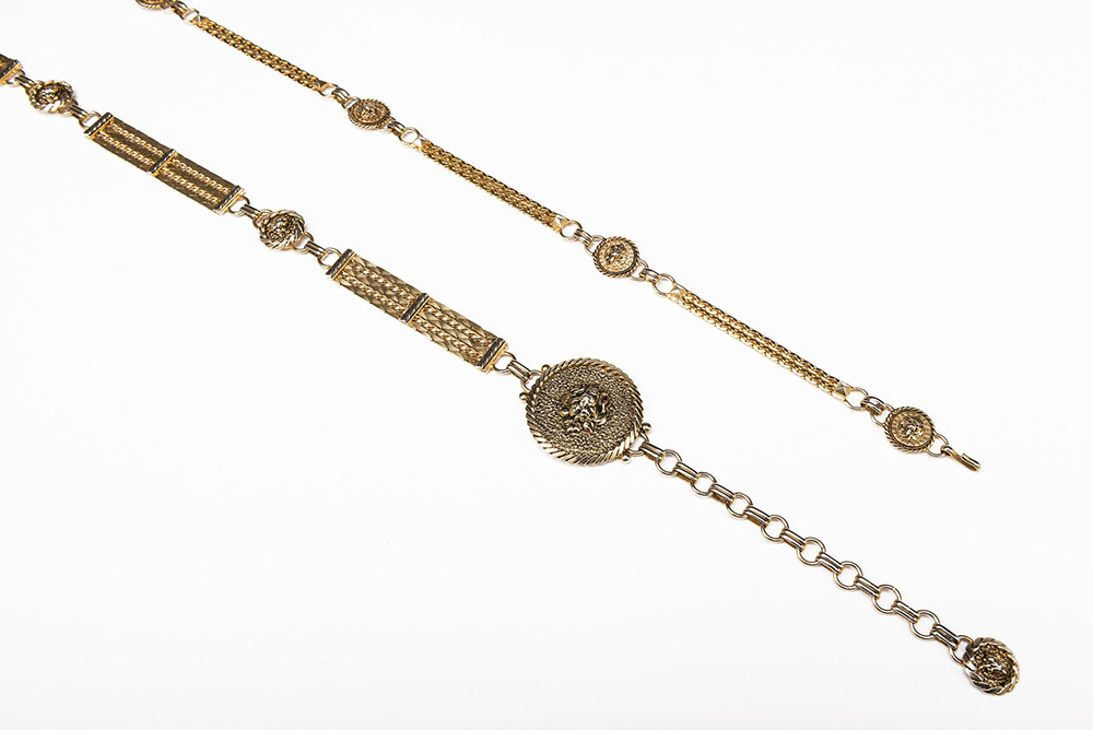 RE Lotto composto da due cinture a catena in metallo color oro, lunghezze diverse