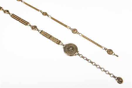 RE Lotto composto da due cinture a catena in metallo color oro, lunghezze...