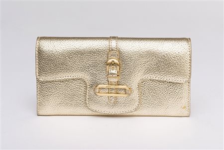 JIMMY CHOO Portafogli color oro con custodia, scatola e certificato di autenticit‡ originali (cm 19)