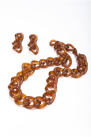 Demi-parure in materiale plastica color tartaruga composto da lunga collana e...