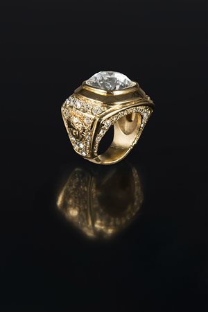 GIANNI VERSACE Anello color oro, pietre incolori ad incorniciare una pietra...