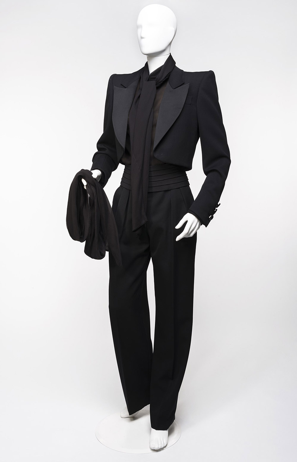 RENATA FERRARI, Milano Smocking composto da pantalone, giacchino corto, camicia in chiffon color nero, fusciacca plissÈ e fusciacca lunga (mis 44)