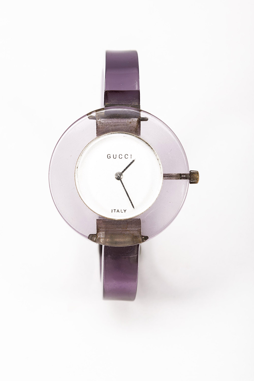 GUCCI, FIRENZE Orologio da polso in plexiglass color ametista con carica...
