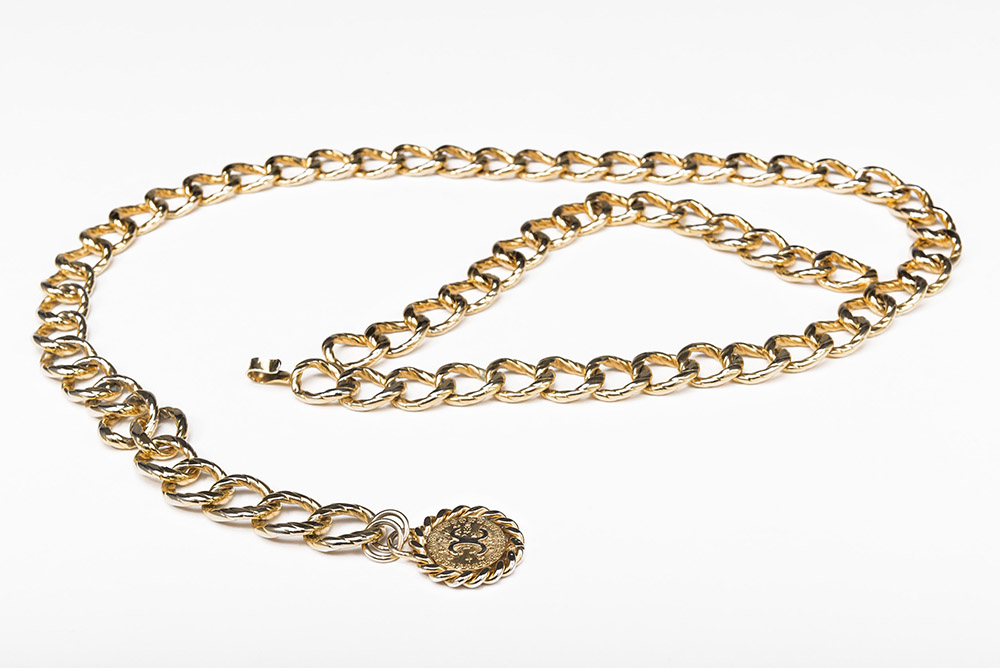 CHANEL Cintura a catena in metallo color oro, cm 102ca. (segni d'uso)