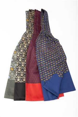 HERMES, PARIS Lotto di quattro cache-col in seta di forma, colore e disegno differenti