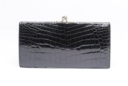 Pochette con tracolla in coccodrillo nero (cm 29)