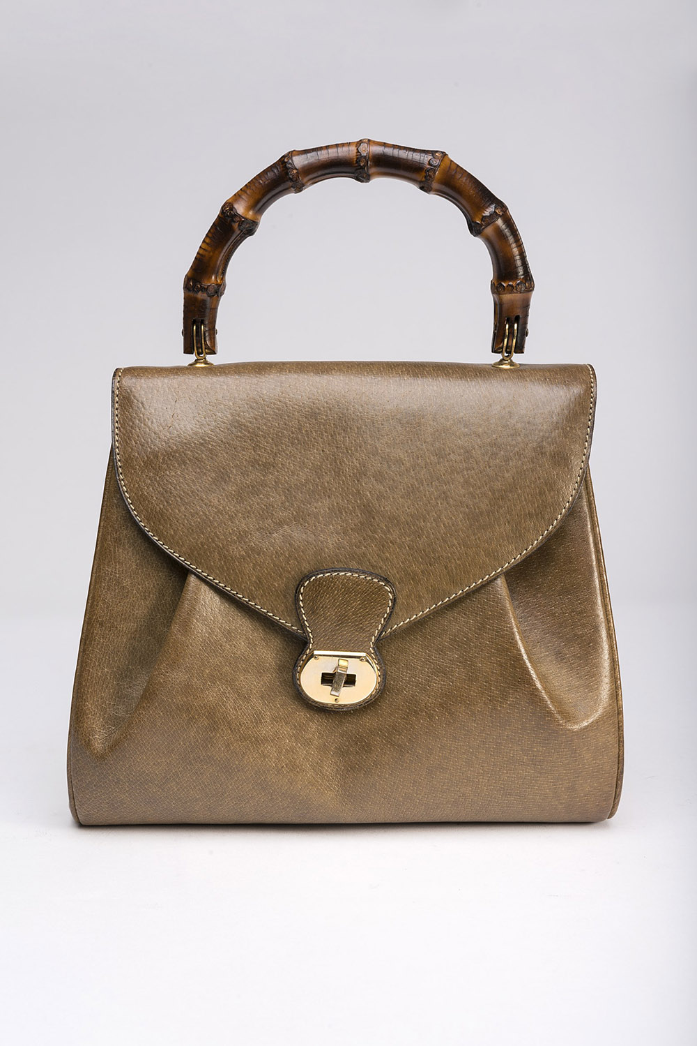 Gucci: borsa in pelle di cinghiale color verde oliva con manico in bamb˘, largh. cm 27, in sacchetto e scatola originali