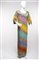 Vestito lungo nei toni pastello rosa, turchese e verdino con applicazioni di paillettes argento