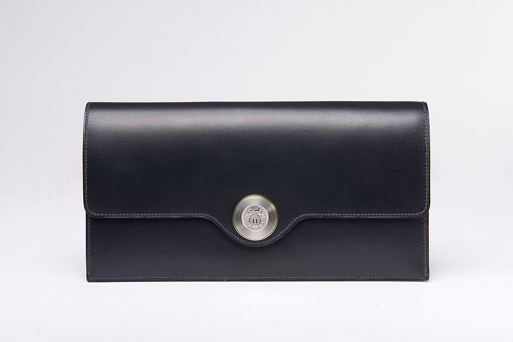 HERMES, PARIS Pochette in pelle blu con chiusura a medaglia logata in metallo...