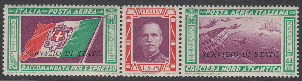 [REGNO D'ITALIA] 1933 Posta aerea di servizio, Crociera Nord Atlantica. Italo Balbo. 50 lire Trittico Servizio di Stato.. Cert. E. Diena, Zanaria. MNH..........(Sass.AS1)