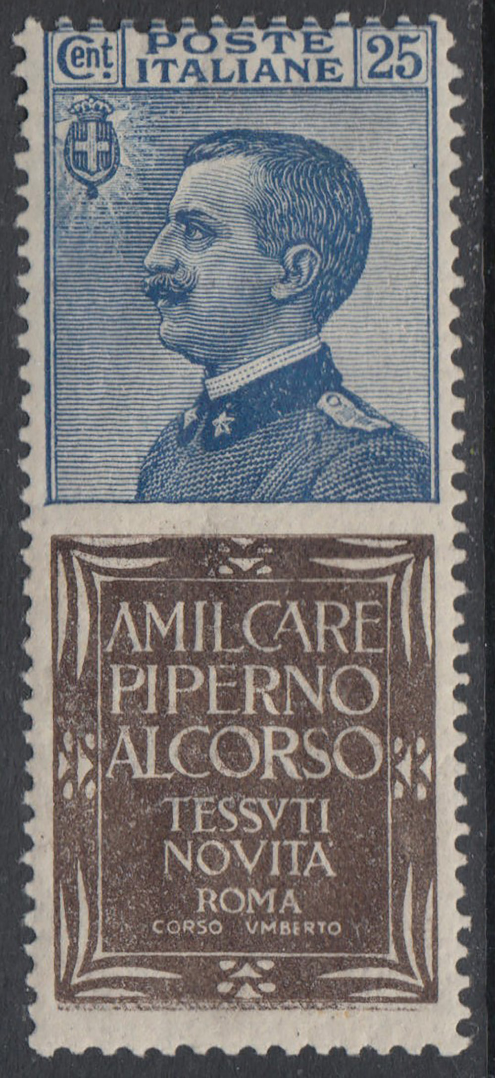[REGNO D'ITALIA] 1924 Pubblicitari, 25c. "Piperno". Cert. S. Sorani. MNH..........(Sass.6)