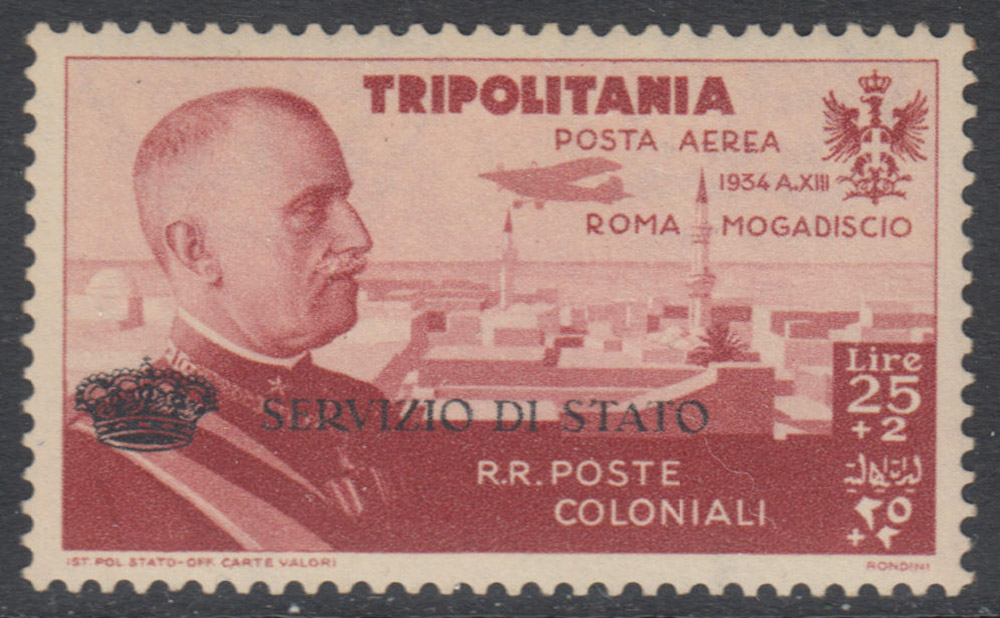 [TRIPOLITANIA] 1934 Servizio aereo, "Coroncina" 25+2 lire carminio. Da...
