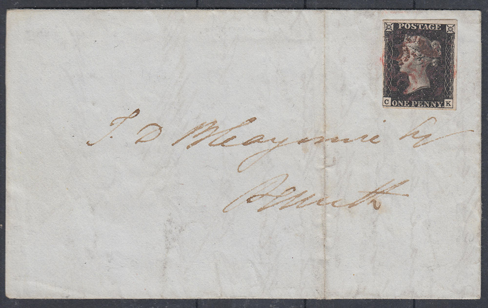 [GRAN BRETAGNA] 1840 (17 giu.) Penny Black, 1d nero, su lettera (CK). Da esaminare. Cover..........(Yv.1)