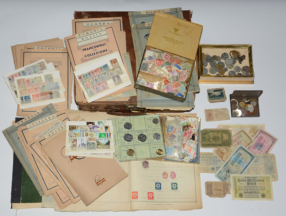 [EUROPA E MONDIALI] Lotto composto da una valigetta contenente numerosi libretti a scelta, pi˘ una presenza di monete e francobolli.