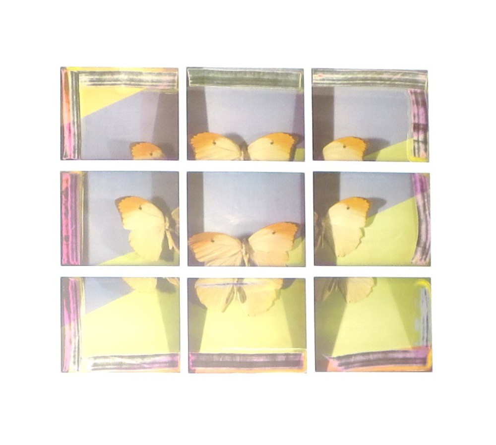 Galimberti Maurizio (Como, 1956) STUDIO FARFALLE N. 5 Mosaico originale di 9 polaroid 26,7x29,4 cm Titolo, data, firma, in basso Opera archiviata presso l'Archivio Nordest (Seregno), al N° 1236 Autentica dell'artista su foto Original 9 polaroid mosaic 26,7x29,4 cm Titled, dated and signed, lower Photo certificate of authenticity by the artist and by the Archive Nordest (Seregno), under N° 1236