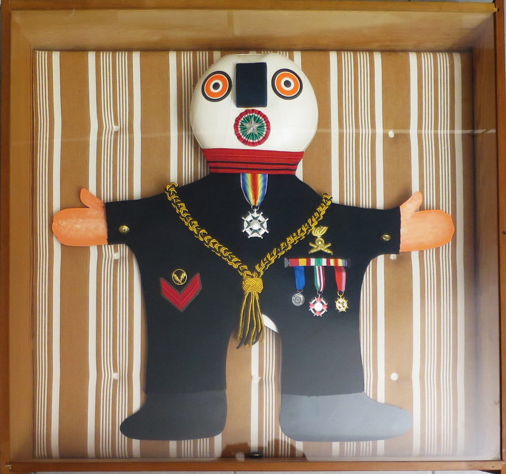 ENRICO BAJ(Italian,1924-2003) 'Generale',1971 tecnica mista, cm 62x66 ed. 64/180, firmato in basso a destra sul piede Bibliografia: Baj 'Catalogue de l'oeuvre graphique et des multiples'a cura di J.Petit, Volume II, Ed. J.Petit & Rousseau Editeur, Genève,1970-1973, al repertorio numero 30 a pagina 100 e a pagina 98 con tavola a colori 'GENERAL',1971 mixed media with applications of small cords,fabrics,and medals in wood case Literature: Baj 'Catalogue de l'oeuvre graphique et des multiples' by J.Petit, Volume II, published by J.Petit & Rousseau Editeur, Genève,1970-1973, pag.100 and 98