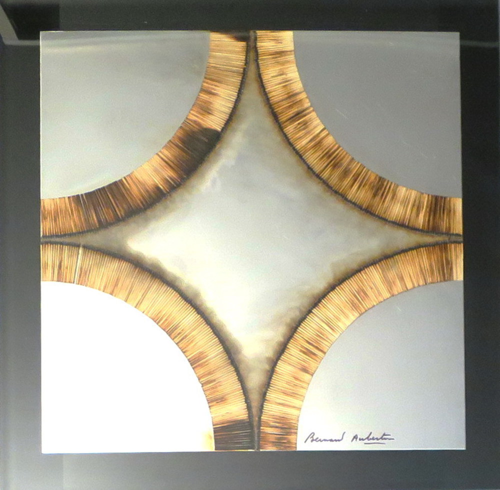 Aubertin Bernard (Francia, 1934-2105) SENZA TITOLO Fiammiferi bruciati su lamiera 50x50 cm Firmato in basso a destra Autentica dell'artista su foto Entro teca in plexiglass Burnt matches on metal sheet 50x50 cm Signed lower right Photo certificate of authenticity issued by the artist Perspex casing