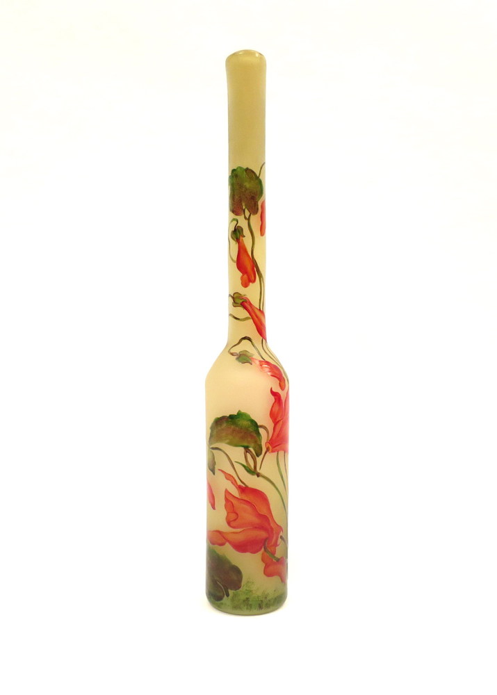 Vaso in vetro cammeo inciso alla mole a quattro colori con decori floreali.Daum Nancy cm. 39 1902-1910
