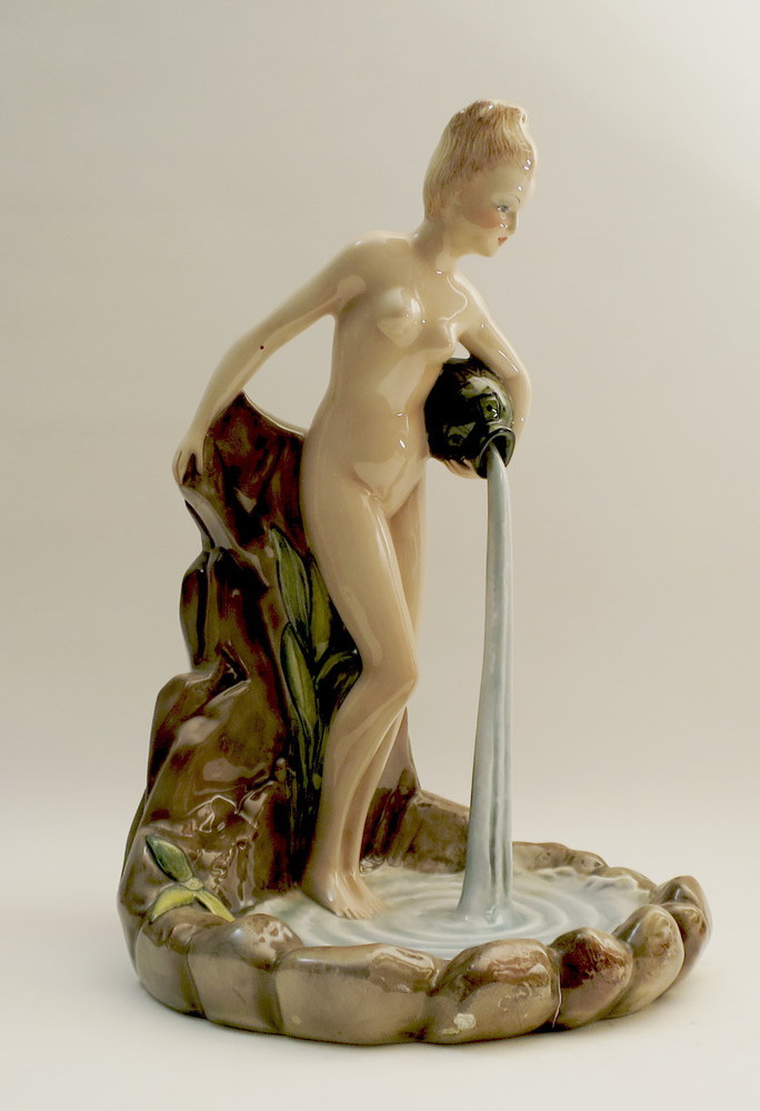 SORGENTE Gruppo in ceramica policroma, 1940 c. 42x25 cm Produzione C.I.A. Torino Marchi: "C.I.A. Torino 'Sorgente' con simbolo del decoratore A C.I.A. 'SORGENTE' POLYCHROME CERAMIC FIGURAL GROUP