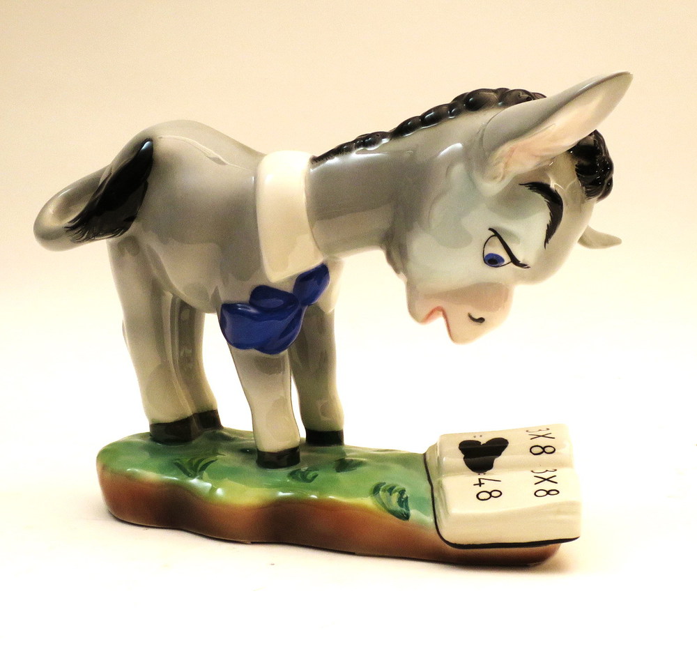 Ghigo Camillo (Torino, 1912- Avigliana TO, 1992) ASINELLO CHE LEGGE Statua in ceramica policroma 18,5x23x12 cm Produzione LENCI, Torino Modello n° 1371 Archivio Lenci Marchi: "Lenci Made in Italy Torino" con simbolo del decoratore, sotto la base Etichetta origianale della Manifattura Bibliografia: "Le Ceramiche Lenci. 1928- 1964 Catalogo generale dall'Archivio storico della Manifattura", a cura di Alfonso Panzetta, Umberto Allemandi Editore, Torino 1992, pag. 334, n° d'archivio 1371 A LENCI 'ASINELLO CHE LEGGE' POLYCHROME CERAMIC STATUE BY CAMILLO GHIGO
