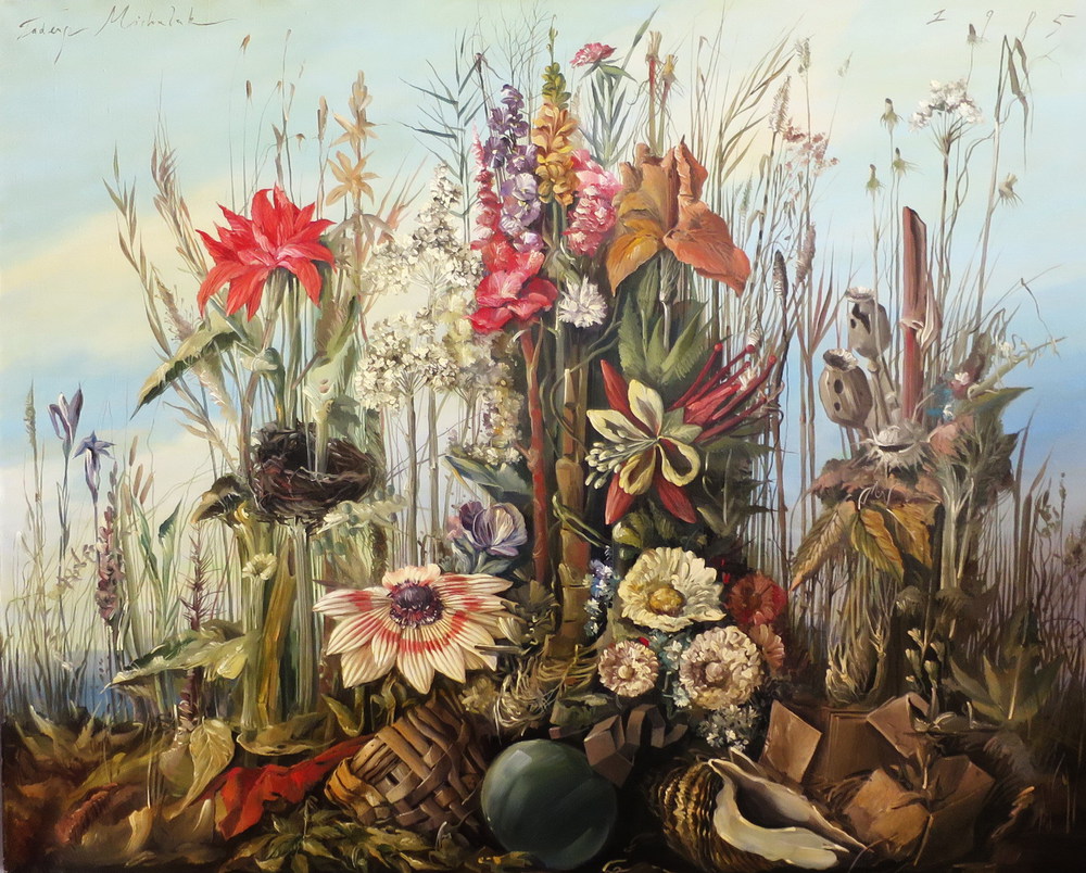 Dipinto tratto ad olio su tela cm 99,5x80,5 raff. "campo di fiori" firmato in...