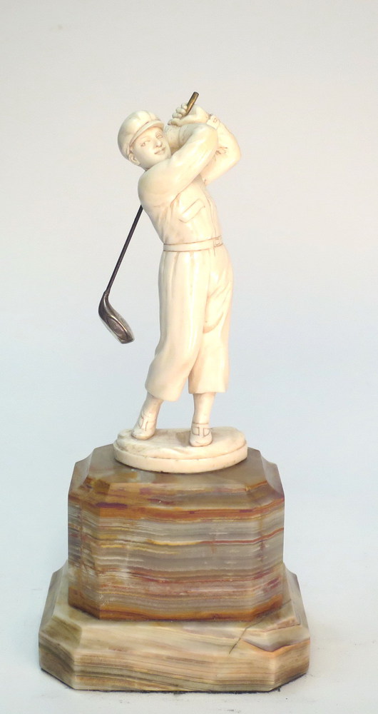 Giocatore di golf firmato M.Delannov Francia 1900ca.h cm.19,5
