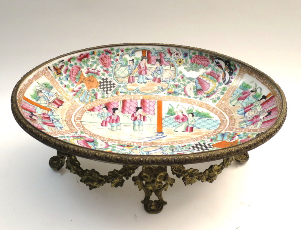 Lot 299 | Piatto in porcellana con sostegno in bronzo dorato, Cina XIX secolo cm.38x27x14