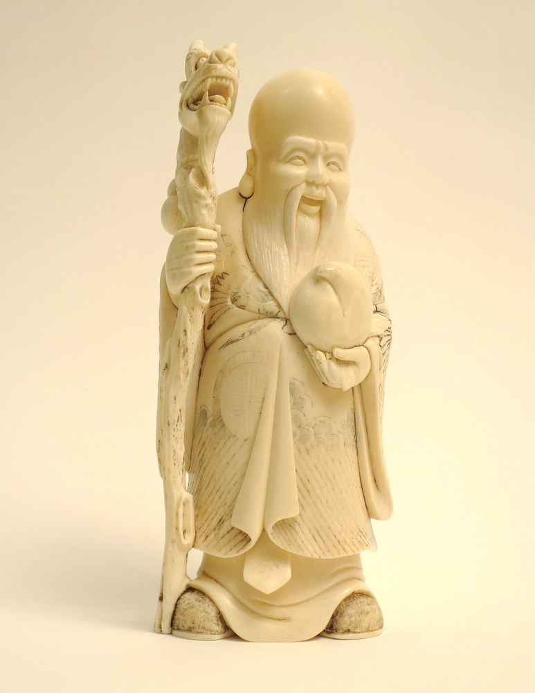 Saggio in avorio con bastone e frutto, Giappone 1900 ca. h.cm20