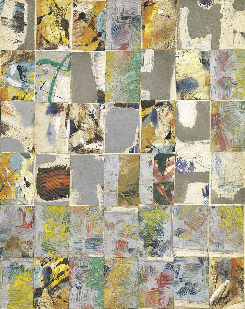 Remo Bianco, Milano 1922 - 1988, Collage, 1960, Olio e tela su cartone telato, cm. 45x35, Firma, data e titolo al verso: Remo Bianco$Collage$60: etichetta con n. 132 e dichiarazione di autenticità di Lyda Bianco.,