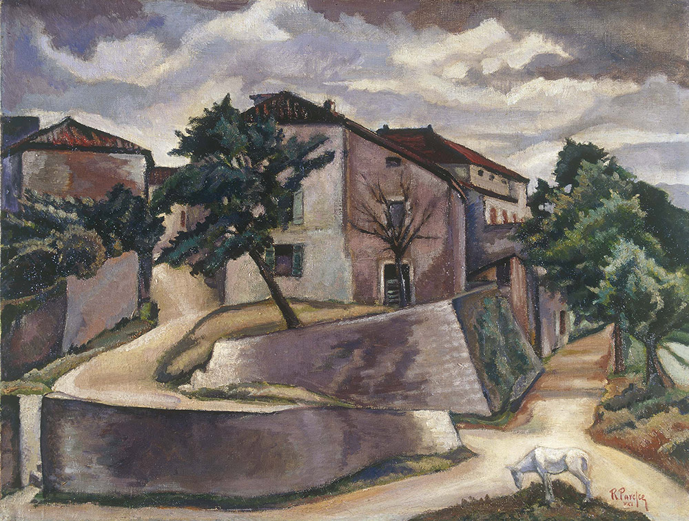 René Paresce, Carouge 1886 - Parigi 1937, Paesaggio, 1921, Olio su tela, cm. 49,7x65, , Firma e data in basso a destra: R. Paresce / XXI. Al verso sul telaio: cartiglio 54) René Paresce "Paysage 1921" / Peintre Italien., , Certificato su foto di Rachele Ferrario, 5 novembre 2008, opera registrata presso l'Archivio Paresce al n. 6/21., , Bibliografia, Rachele Ferrario, René Paresce. Catalogo ragionato delle opere, Skira editore, Milano, 2012, p. 165, n. 6/21., ,
