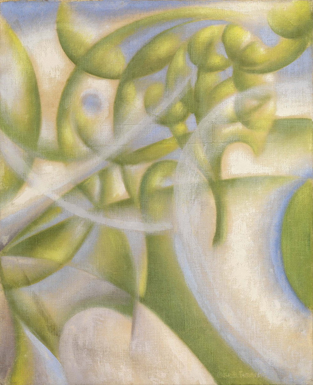Giacomo Balla, Torino 1871 - Roma 1958, Morbidezze di primavera, 1917 ca., Olio su tela applicata su carta, cm. 56,3x45,8, , Firma in basso a destra: Balla Futurista; titolo e firma al verso sulla carta: Morbidezze primavera Balla:, , Storia, Collezione L. Caetani Lovatelli, Roma (dipinto per la famiglia dall'artista;, Collezione Luisa Laureati, Roma (1971);, Galleria Farsetti, Prato;, Collezione privata, Padova (1980 ca.);, Collezione privata, , Esposizioni, Giacomo Balla, Roma, Galleria Nazionale d'Arte Moderna, Valle Giulia, 23 dicembre 1971 - 27 febbraio 1972, cat. p. 173, n. 60, illustrato;, Balla, Parigi, Musée d'Art Moderne de la Ville de Paris, 24 maggio - 2 luglio 1972, cat. pp. 116-117, n. 34, illustrato;, Du futurisme au spatialisme, peinture italienne de la prèmiere moitié du XXe siècle, Ginevra, Museé Rat, 7 ottobre 1977 - 15 gennaio 1978, cat. n. 8, illustrato (con titolo Printemps);, Giuseppe Pellizza e Giacomo Balla, dal Divisionismo al Futurismo,con testi di Maurizio Fagiolo dell'Arco, Piero Pacini e Rachele Ferrario, scheda a cura di Elena Gigli, Cortina d'Ampezzo, Farsettiarte, 9 agosto - 3 settembre 2000, poi Prato, 14 - 24 settembre, poi Milano, 27 settembre - 30 ottobre, cat. n. 21, illustrato a colori., , Attestato di libera circolazione, n. 5503 del 02/12/2015., , Bibliografia, Giorgio De Marchis, Giacomo Balla. L'aura futurista, Giulio Einaudi, Torino, 1977, fig. 78;, Giovanni Lista, Balla, Edizioni Galleria Fonte D'Abisso, Modena, 1982, p. 267, n. 561., ,