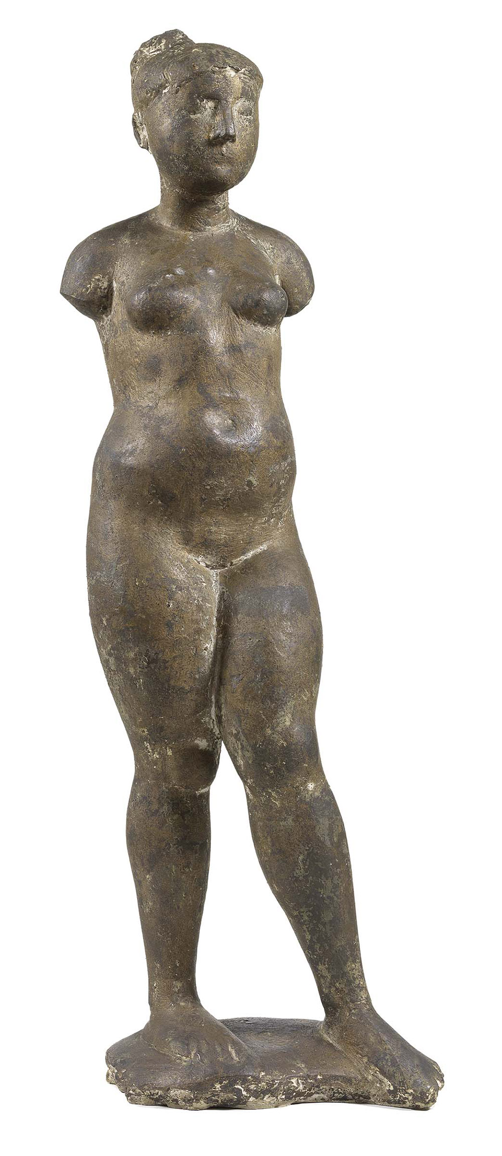 Marino Marini, Pistoia 1901 - Viareggio (Lu) 1980, Giovinetta, 1943, Scultura in bronzo, cm. 133 h., , Sigla a punzone sulla base: M M. Sotto la base: etichetta XXIV Esposizione Biennale Internazionale d'Arte - Venezia 1948, con n. 941., , Storia, Collezione Valli, Firenze;, Collezione privata, , Della scultura esiste un esemplare in gesso, Pistoia, Fondazione Marino Marini, e sei esemplari in bronzo, di cui quattro in collezione privata., , Bibliografia, Raffaele Carrieri, Marino Marini scultore, Edizioni Del Milione, Milano, 1948, tavv. 42, 43 (bronzo);, Umbro Apollonio, Marino Marini sculptor, Edizioni del Milione, Milano, 1958, n. 37 (gesso);, Mostra di Marino Marini, Ed. De Luca-Toninelli, Roma-Milano, 1966, p. 34, n. 20, fig. 13 (bronzo, con titolo «Nudo»);, Alberto Busignani, Marino Marini, Sadea Sansoni,Firenze, 1968, tav. 11 (bronzo, part.);, Gualtieri di San Lazzaro, Marino Marini, l'opera completa, introduzione H. Read, saggio critico di P. Waldberg, Silvana Editoriale d'Arte, Milano, 1970, CS n. 148 (bronzo);, Carlo Pirovano, Marino Marini, contributi di G. Contini, W. Haftmann, A.M. Hammacher, E. Steingräber, Museo San Pancrazio Firenze, Electa, Milano, 1988, pp. 97, 228, n. 82 (bronzo);, Maria Teresa Tosi, Marino Marini. Catalogo ragionato della scultura, Skira Editore, Milano, 1998, pp. 138, 139, n. 193 b., ,