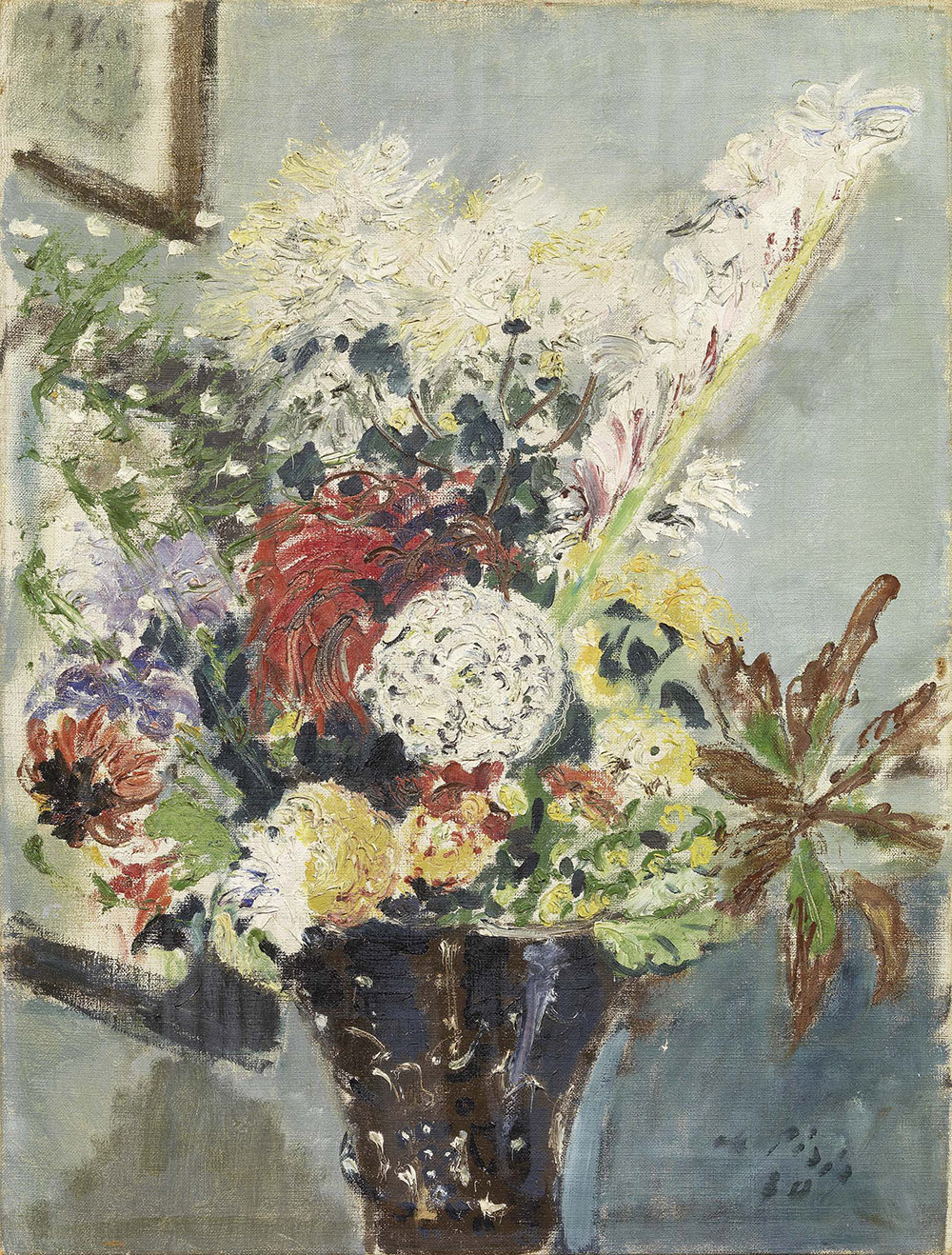 Filippo de Pisis, Ferrara 1896 - Milano 1956, Dalie, gladioli, ireos, 1930, Olio su tela, cm. 80x60, , Firma e data in basso a destra: De Pisis / 30. Al verso sul telaio: etichetta De Pisis / Gli anni di Parigi / 1925 - 1939 / Galleria dello Scudo / Verona, 13 dicembre 1987 - 31 gennaio 1988 / Galleria dell'Oca / Roma 5 febbraio 1988 - 19 marzo 1988 / Opera Esposta: etichetta De Pisis / Gli anni di Parigi / 1925 - 1939 / Castello Svevo / Bari, 24 marzo - 29 aprile 1988 / Opera Esposta: etichetta Comune di Verona / Mostra di / Filippo de Pisis / 6 luglio - 21 settembre 1969, con n. 65 e n. 120., , Storia, Collezione Manù Balbo, Roma;, Collezione Mimì Quilici, Ferrara;, Galleria Gian Ferrari, Milano;, Collezione privata, , Esposizioni, Mostra dell'opera pittorica e grafica di Filippo de Pisis, Verona, Palazzo della Gran Guardia, 12 luglio - 21 settembre 1969, cat. p. 145, n. 120, illustrato;, De Pisis, gli anni di Parigi 1925-1939, Verona, Galleria dello Scudo, 13 dicembre 1987 - 31 gennaio 1988, poi Roma, Galleria dell'Oca, 5 febbraio - 19 marzo, poi Bari, Castello Svevo, 24 marzo - 29 aprile, cat. pp. 132, 133, n. 31, illustrato a colori;, De Pisis a Milano, a cura di Claudia Gian Ferrari, Milano, Palazzo Reale, 13 giugno - 13 ottobre 1991, cat. p. 124, illustrato a colori;, De Pisis dalle avanguardie al "diario", Roma, Galleria Nazionale d'Arte Moderna, 6 febbraio - 12 aprile 1993, cat. pp. 102, 180, n. 54, illustrato a colori., , Bibliografia, Giuliano Briganti, De Pisis. Catalogo generale, tomo primo, opere 1908-1938, con la collaborazione di D. De Angelis, Electa, Milano, 1991, p. 239, n. 1930 65., ,