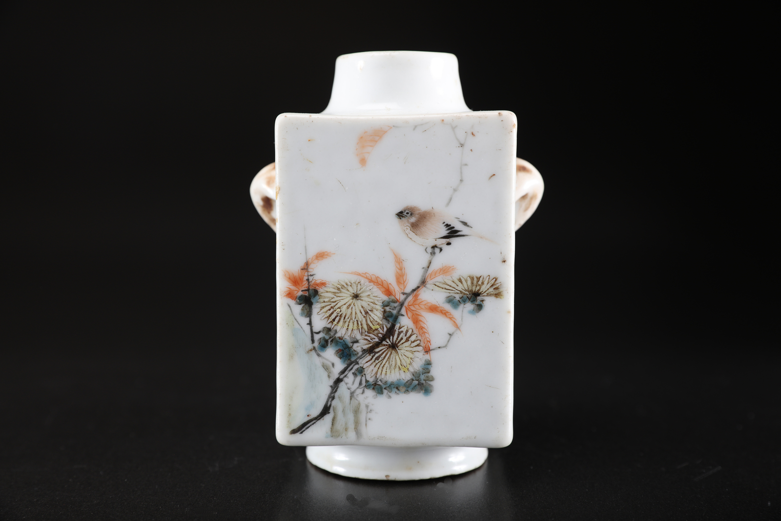 Arte Cinese A small polychrome porcelain vase painted with birds on blossoming branches and inscriptions with seal and signature of the artist
