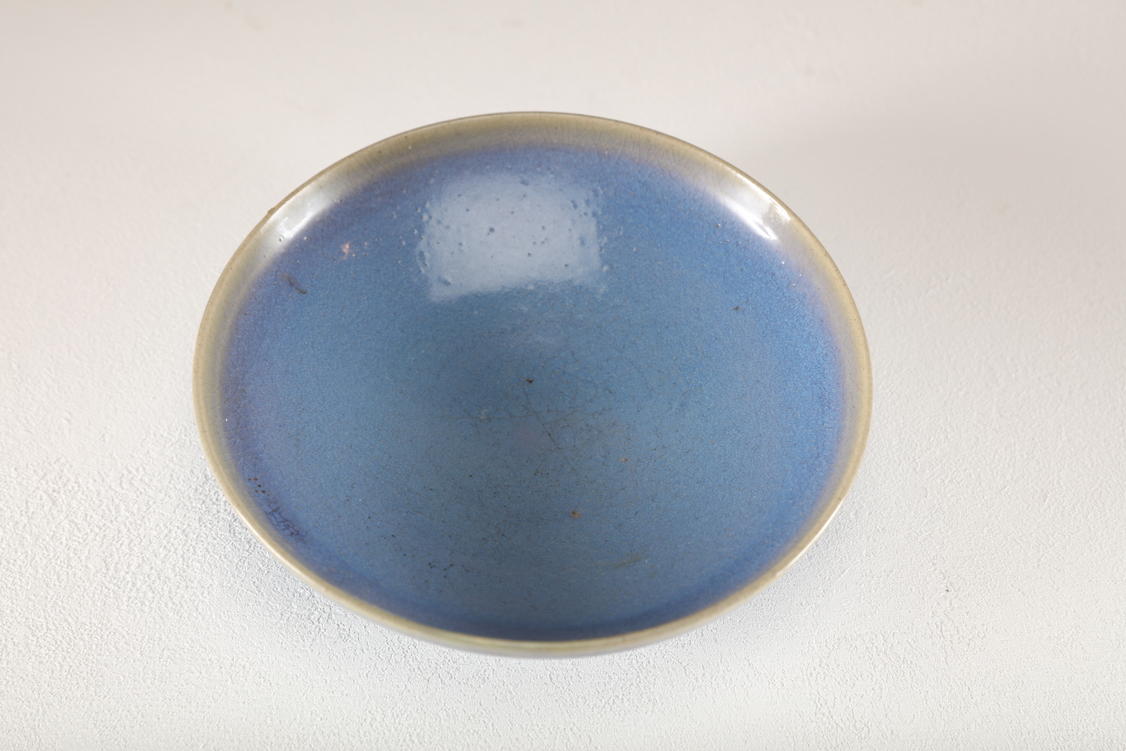 Arte Cinese A blue glazed and cream rim Song style pottery bowl