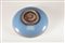 Cina, dinastia Qing. . Cm 16,00 x 4,00. Poggiante su disco ricoperto da spessa invetriatura azzurra e l'orlo superiore color crema.