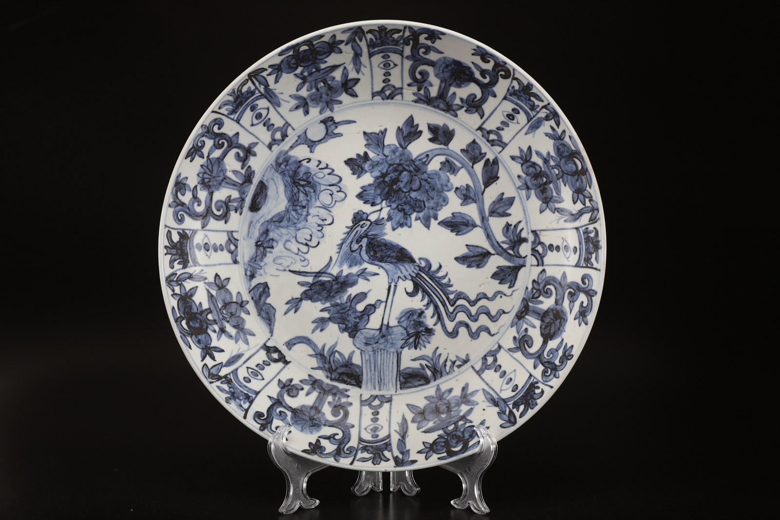 Arte Cinese A blue and white Swatow dish painted with a heron among flowers