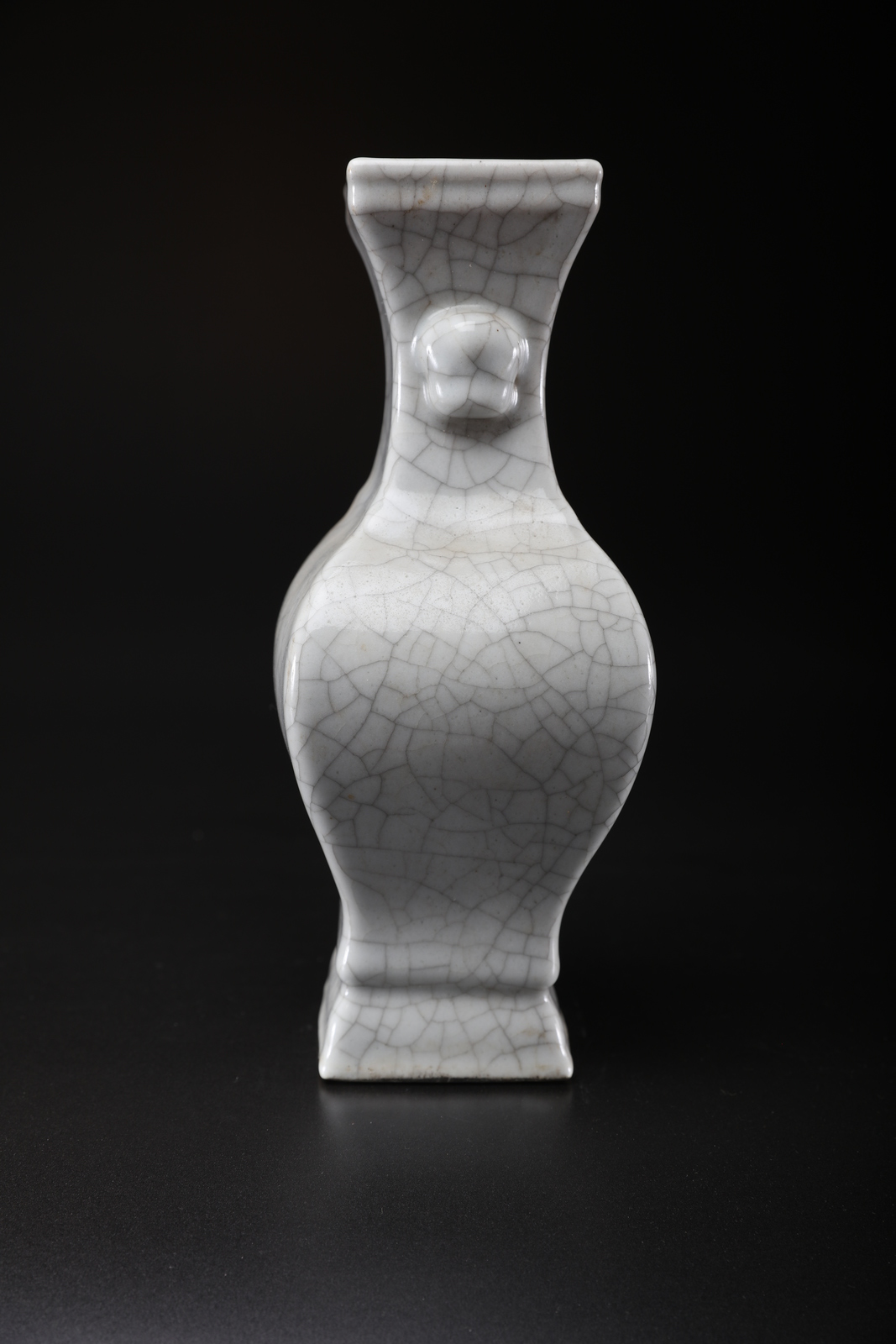 Cina, dinastia Qing, XIX secolo . . Cm 30,00. Di forma squadrata, caratterizzato da base e collo rettangolari. Sul collo si innestano due finti manici a forma di teste di drago.