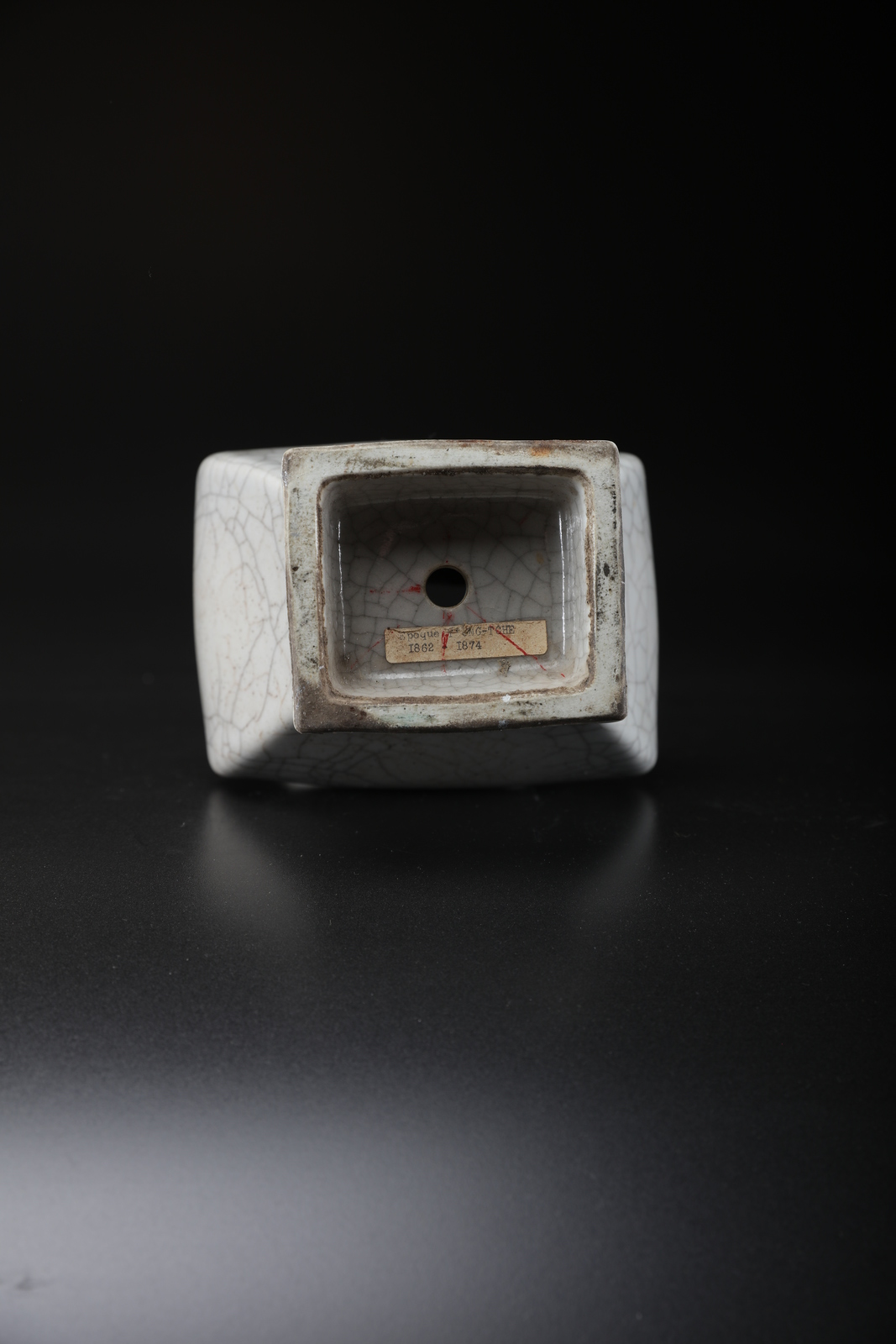 Arte Cinese A porcelain vase with guanyao glaze and square shape inspired by similar archaic items