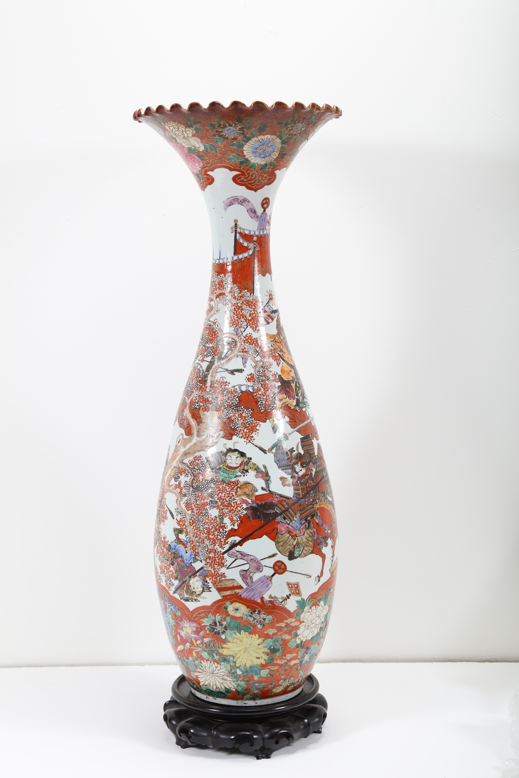 Arte Giapponese A very large Kutani tulip shaped vase with samurai and floral decoration