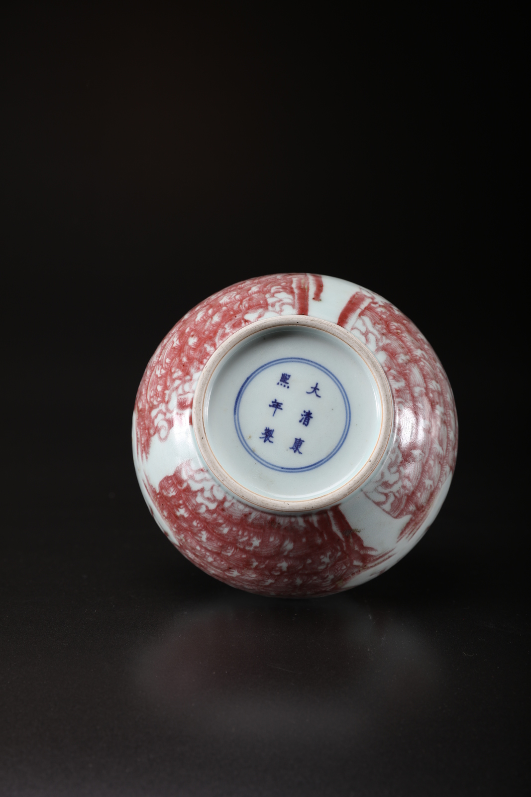 Lot 32 | Arte Cinese Alta bottiglia in porcellana dipinta in rosso con raffigurazioni...