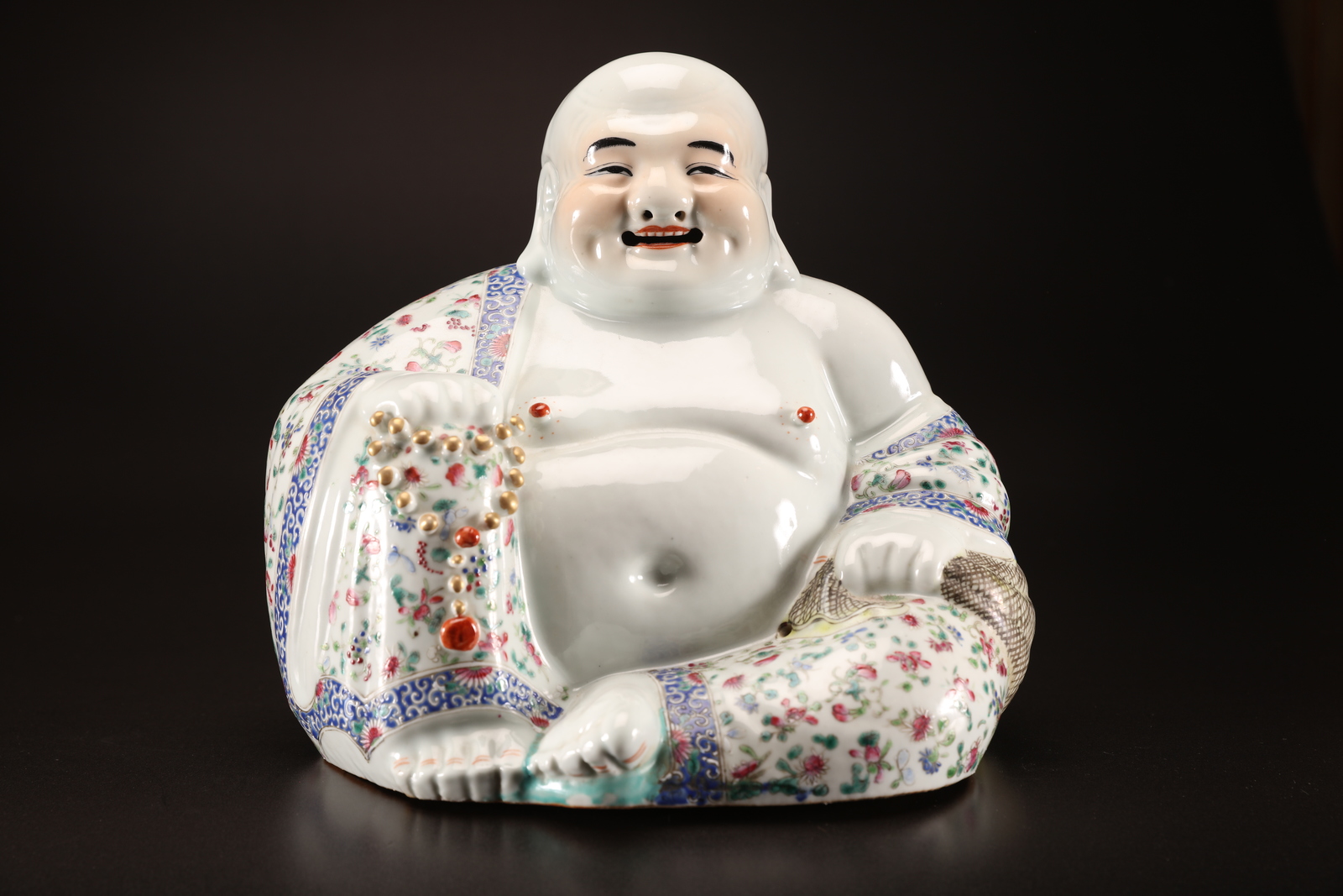 Arte Cinese Statua in porcellana policroma raffigurante il Buddha felice....