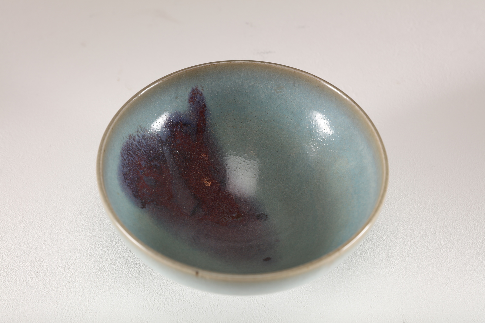 Arte Cinese A Jun style pottery bowl with lavander glaze and copper red splash decoration China, Qing dynasty 19th century . . Cm 16,00 x 8,00.