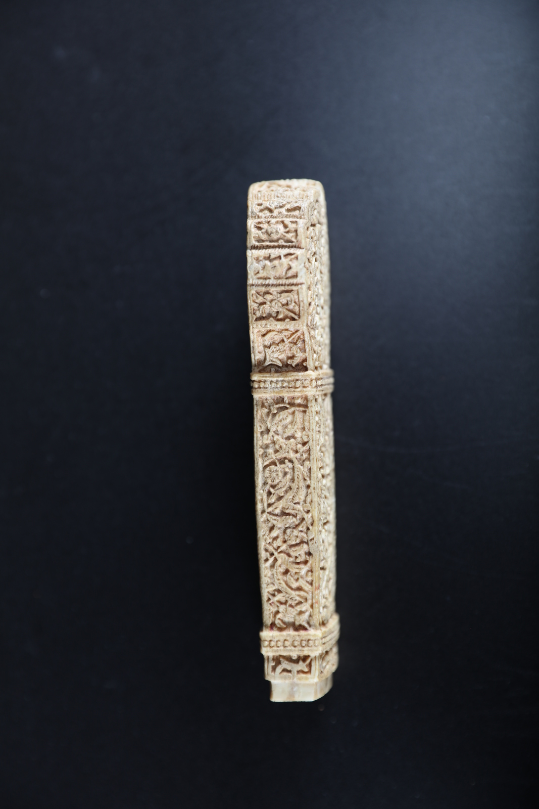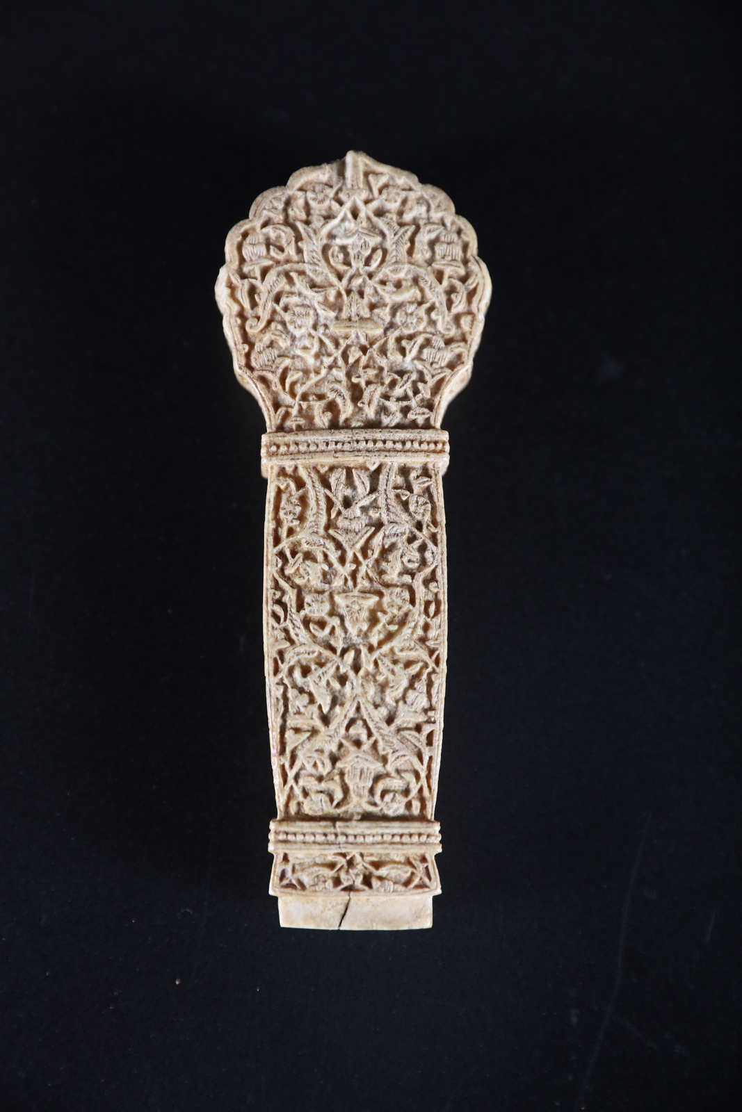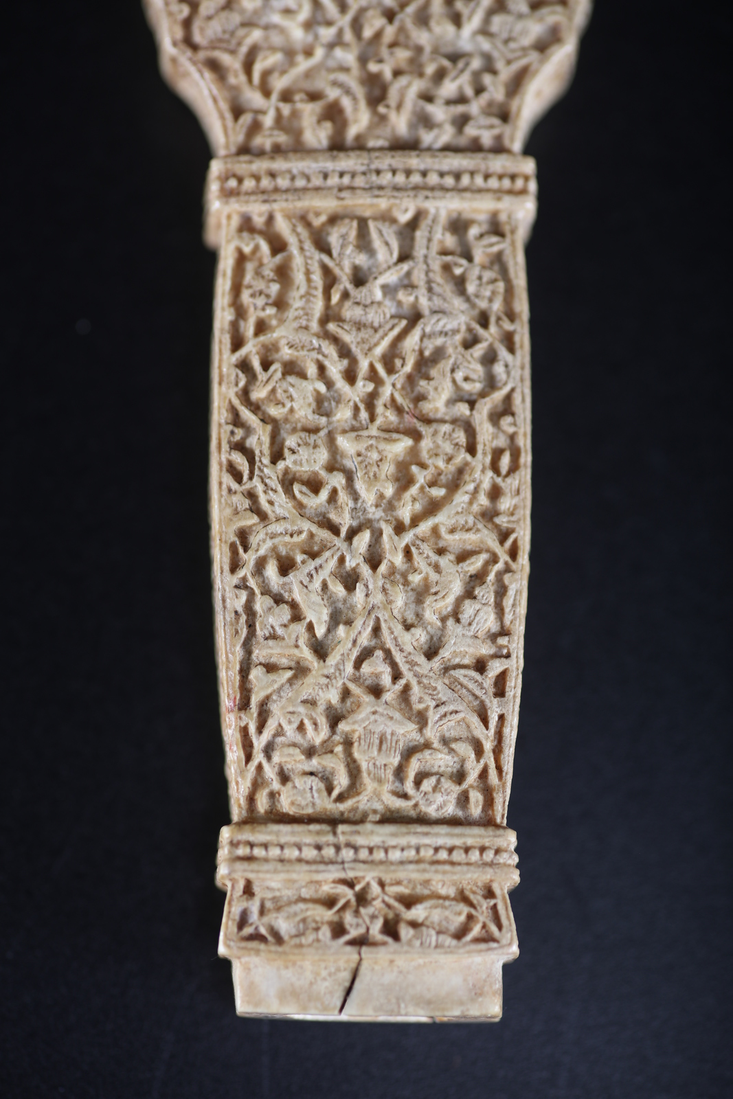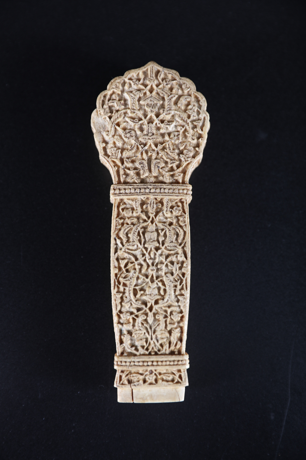 Arte Islamica A fine and rare ivory dagger hilt extremely finely carved with arabesques